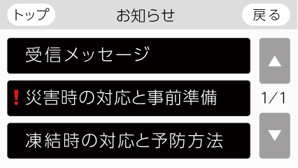 あらかじめ登録した警報がお住まいの地域で発令されると、停電時や断水時の機器の使用方法やアドバイスをお知らせします。