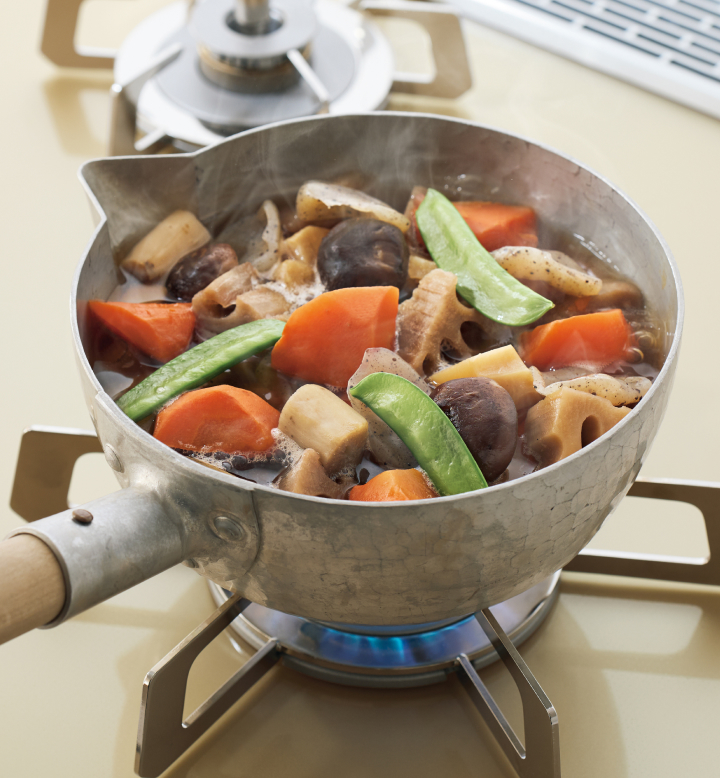 筑前煮や肉じゃがなど、火加減の調節がポイントの煮もの料理を自動調理。もう一品、ほかの調理に集中できます。