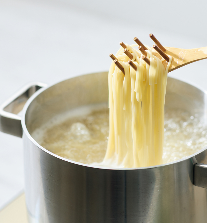 水量や麺の量を判別し、タイマー設定した時間で自動火力調節して吹きこぼれないように茹で上げます。