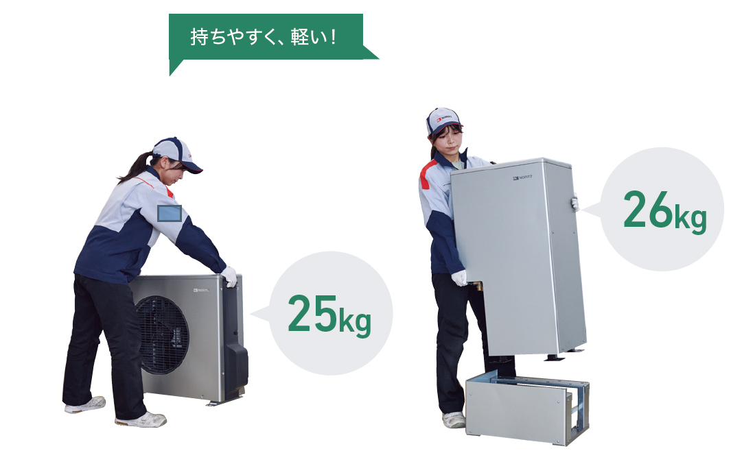 - 貯湯ユニットは26kg(満水時98kg)という軽量設計。