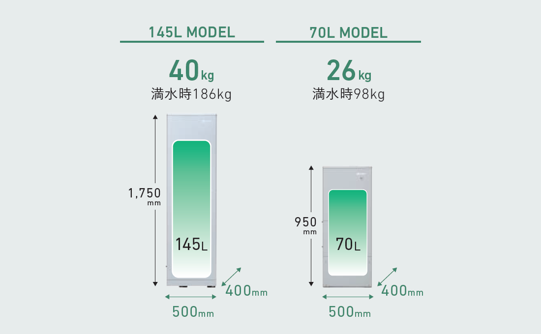 また、70L MODELは基礎工事が不要となるため、設置工事費の削減にもつながります。