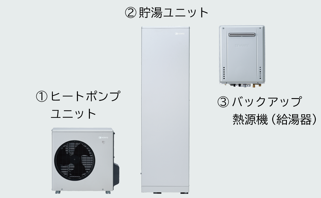 ③バックアップ熱源機(給湯器)は自由に選択可能