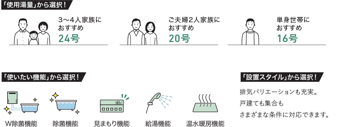 戸建・集合住宅兼用とすることで、わかりやすく選択しやすいラインアップを実現。
