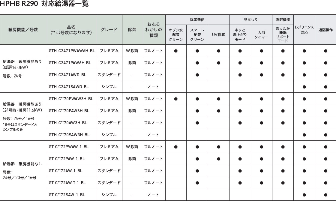 自然冷媒ハイブリッド給湯機 HPHB R290ラインアップ