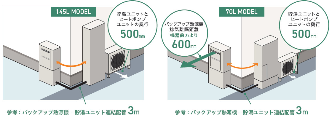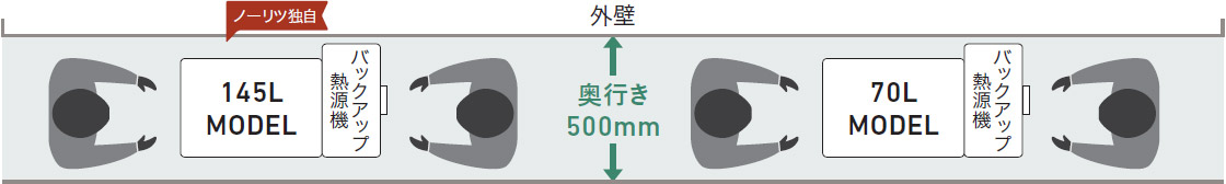 145L MODEL、70L MODELの抱き合わせ設置は、D500設置に対応します。