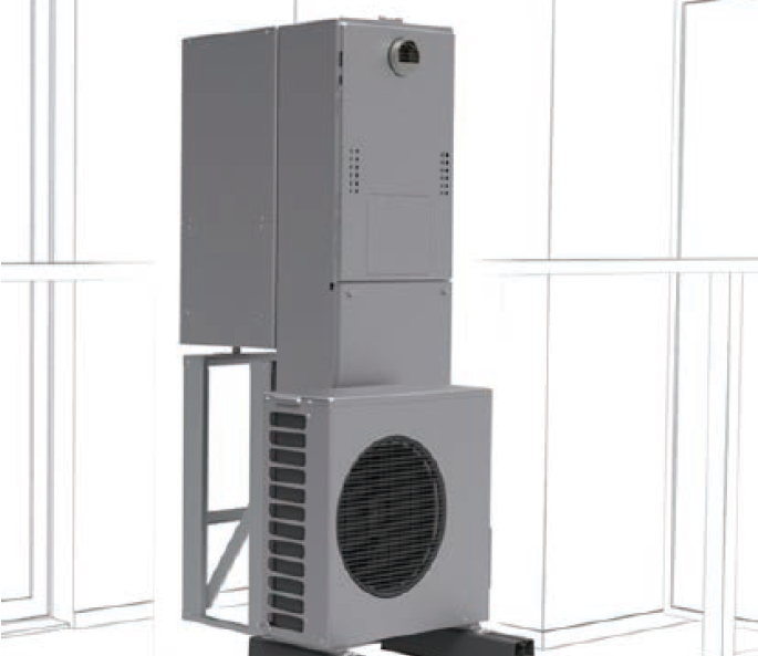 貯湯ユニット専用据置台H800(26年発売予定)と組み合わせる事で抱き合わせ設置が可能となり、集合住宅の外観を損ねないデザイン性を実現