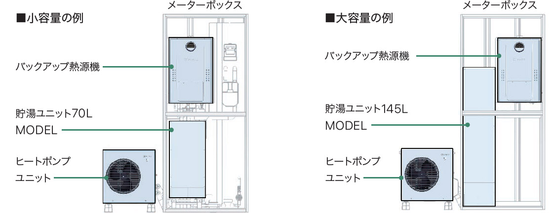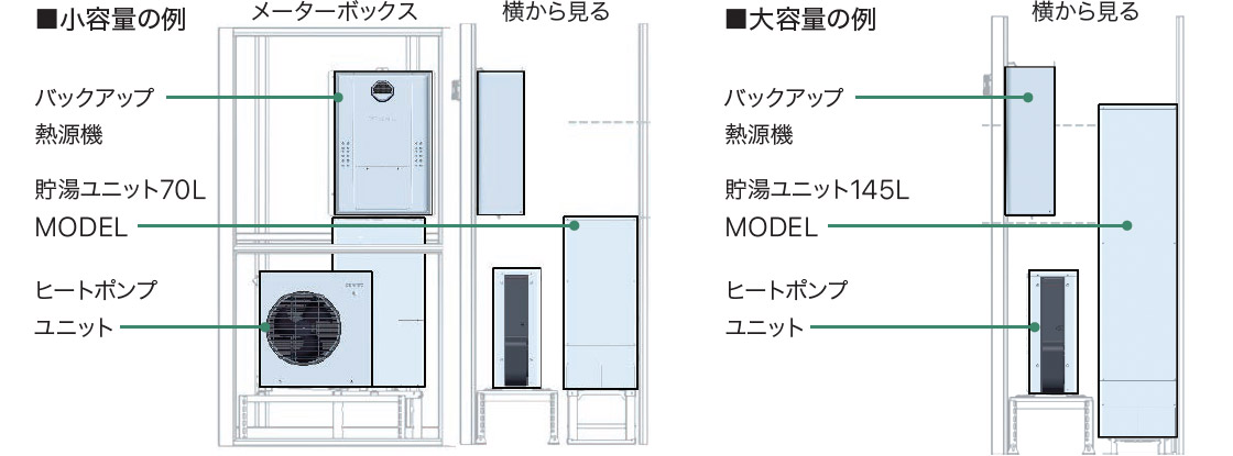 145L MODEL、70L MODEL問わずメーターボックス設置や、バルコニー設置など柔軟な設置パターンに対応します。