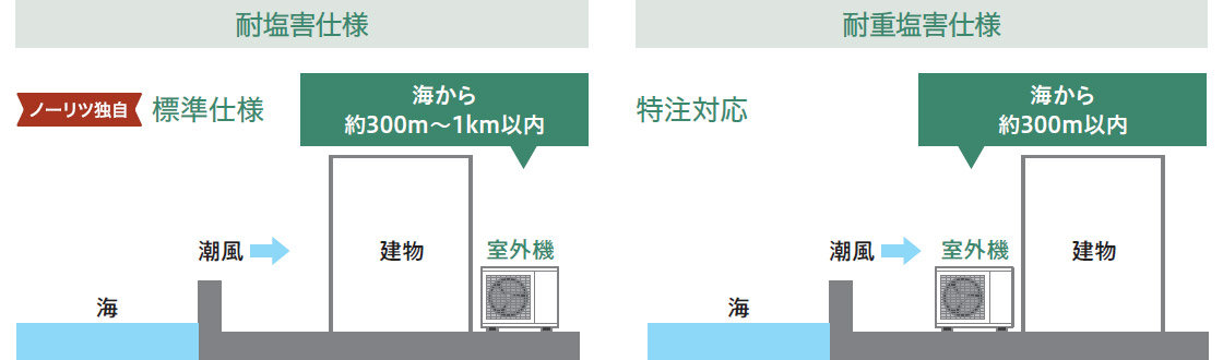 ※1(一社)日本冷凍空調工業会規格(JRA9002)の耐塩害仕様に基づいています。