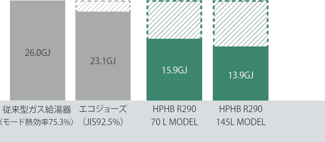 新スマート制御により光熱費を節約し、給湯・保温一次エネルギー消費量(BEI)の低減につながります。