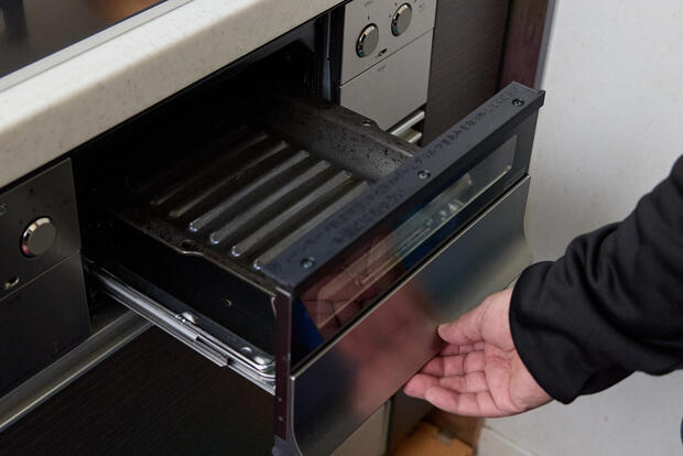 取り替え前に比べて使い勝手の面で変わったのが、操作パネル。プッシュ式でパネルが出てくるため、操作しやすくなったと感じます。さらに便利になったと思うのがグリル。以前は目視で焼き加減を確認しながら感覚で魚を焼いていましたが、今はロティプレートに並べてオート設定にするだけで美味しく焼き上がります。秋刀魚も鮭もほっけも、ふっくら美味しい。お手入れ範囲も圧倒的に少なくなりました。以前は魚を焼くと玄関までニオイが届いていたので窓を開けて換気していましたけど、今はほとんど気にならないですね。