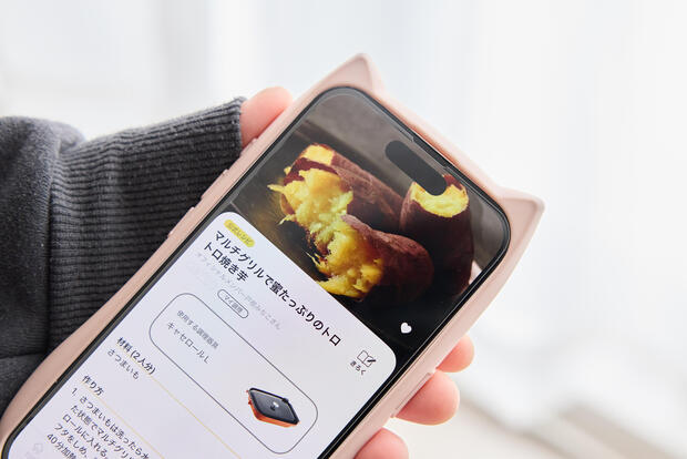 もうひとつ、家族に大好評だったのが、マルチグリルで作った焼き芋。使ったのは、地元・新潟のさつまいも「いもジェンヌ」。子どもが芋掘りで持ち帰ってきたものが残っていて、レシピを見たところ「焼き芋」が載っていたので試しに作ってみたら…すごく美味しく焼き上がりました。子どもたちも大喜びで、あっという間になくなってしまいましたね。スーパーでも焼き芋は買えますが、やはり焼きたてが一番。トースターで試したこともありますけど、なかなか上手くできなくて。焼き芋メーカーを買おうかと本気で考えていたくらいです。マルチグリルでこんなに美味しくできるので、買う必要も無くなりました。家族みんな焼き芋大好きなので、とても助かっています。家電を新しく買わなくていいという意味でも、お得に感じています。